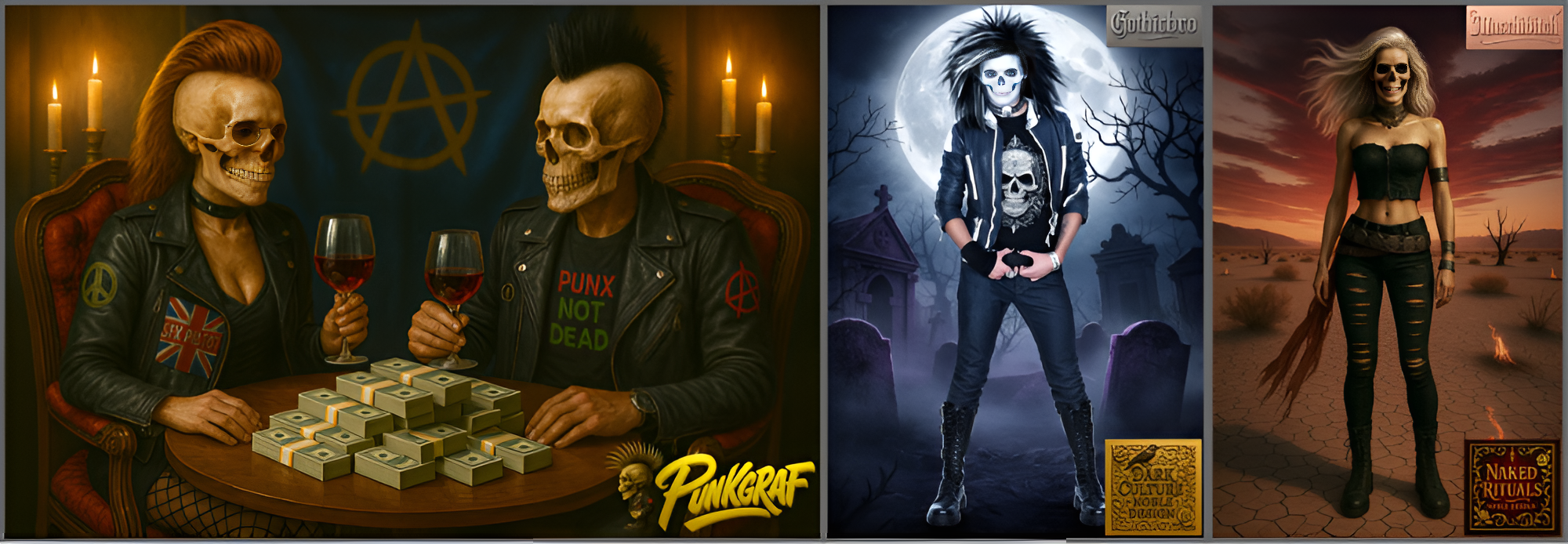 Die Designs von Punkgraf®, Punkgräfin®, Muschibitch® und Gothicbro® stehen für mehr als nur Motive – sie verkörpern eine harte, ehrliche und kompromisslose Lebenseinstellung. Diese Charaktere sind keine Fantasiefiguren – sie sind eine Haltung. Sie stehen für Loyalität, Rebellion, Freiheit, Ehre und Unabhängigkeit – Werte, die in der heutigen Welt viel zu oft verloren gehen, aber tief im Inneren von treuen Fans und Liebhabern dieser provokanten Designs bestätigt werden.